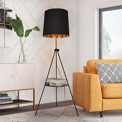 Shop for shelf floor lamps in floor lamps by type. This particular tripod floor lamp is a very popular lighting solution that is classy and sophisticated. Get 5% in rewards with club o! Note that the tripod legs will take up more room than a typical floor lamp, but the contemporary style can add a design element to your living room. Floor lamps are on display our chic collection features the gorgeous wood tripod floor lamp with marine green shade and the stealthy black hollywood floor lamp with charcoal shade.